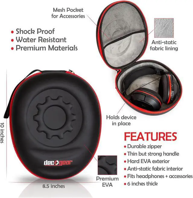 Deco Gear Full-Sized Premium Hard Body Professional Headphone CaseProtect your prized headphones in style with the Deco Gear Full Size Headphone Case! Utilizing premium materials and design, this case fits nearly all full-size headphones - including on-ear, over-ear, and studio variants. A hard EVA exterior is shock proof keeping your gear safe from harm and accidental drops. This Deco Gear case also boasts water resistant features and a durable zipper, so if you get caught in the rain you won't have to worry! On the inside, an anti-static fabric lining stops electrical build-up in its tracks, protecting sensitive components and against shocking surprises.