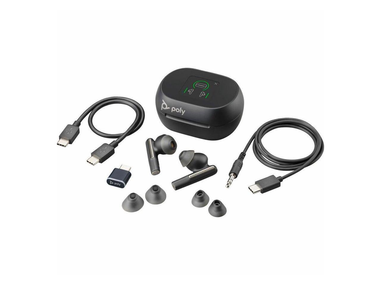 Poly Voyager Free 60+ UC Carbon Black Earbuds +BT700 USB-C Adapter +Touchscreen Charge Case (7Y8G4AA)