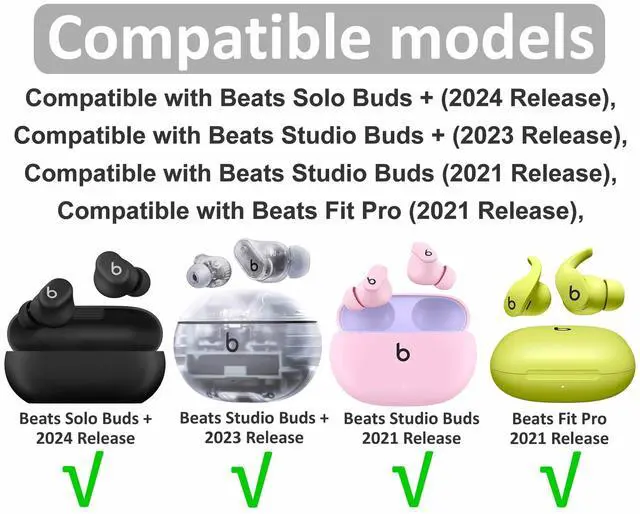 These ear tips compatible with Beat Solo Buds, compatible with Beat Studio Buds +, compatible with Beat Fit Pro, compatible with Beat Studio Buds.