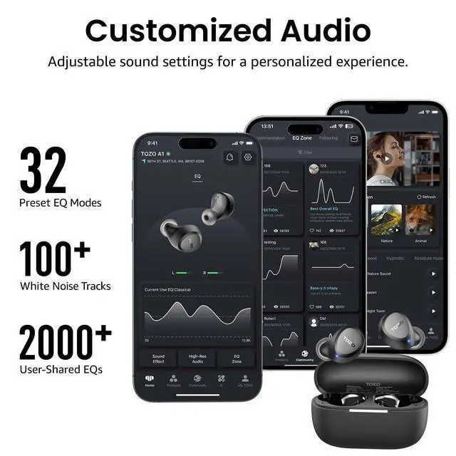 The TOZO app has 32 preset EQs and access to over 2,000 personalized EQs shared by global audiophiles.
