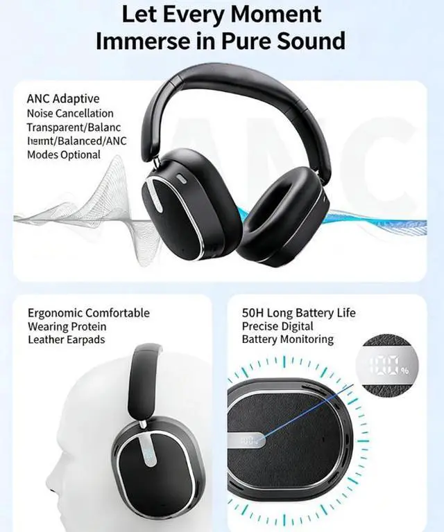 Soft memory protein earmuffs and adjustable headband offer lightweight pressure-free wearing, perfect for all-day study, work, and travel.