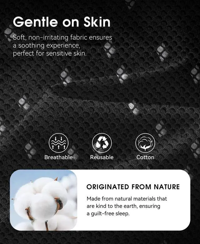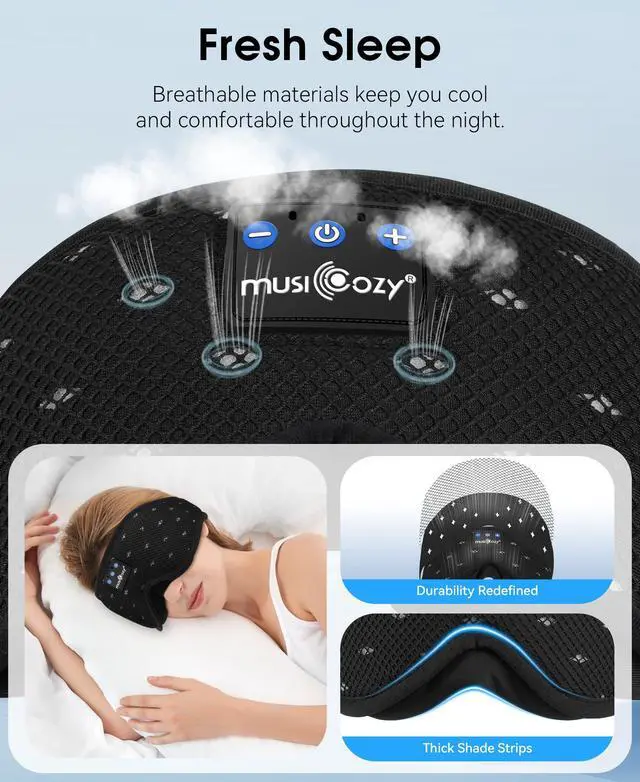 Premium Breathable Material - MUSICOZY Breathable eye mask is crafted from a high-quality mesh fabric that is not only odor-free but incredibly soft and delicate against the skin. Designed for optimal comfort, it effectively wicks away sweat and promotes breathability, making it suitable for both hot summer days and chilly winter nights. The built-in high-elasticity breathable cotton ensures that you stay cozy and comfortable, no matter the season.