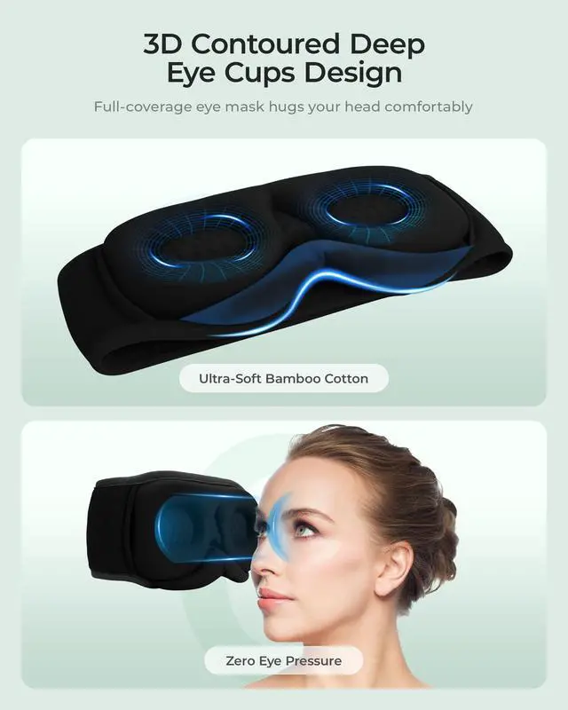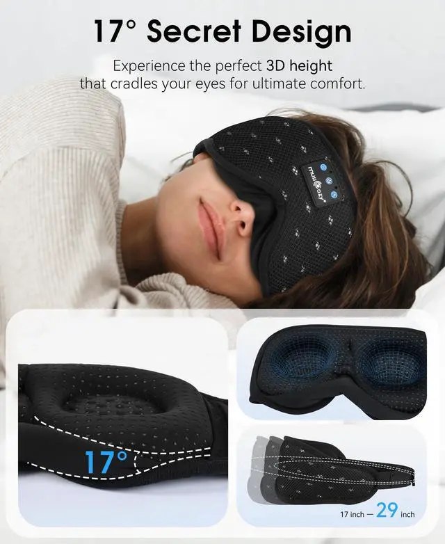 Fit for Any Sleeping Position - MUSICOZY eye mask features a customizable magic tape strap that allows for a secure fit, regardless of your sleeping position. Whether you sleep on your back, side, or stomach, you can rest assured that the mask will stay in place throughout the night, providing you with the comfort and stability you need for a peaceful slumber.