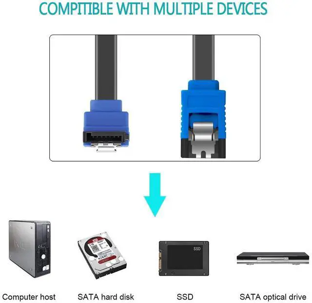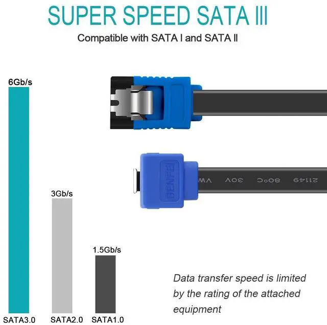 - The BENFEI SATA to 90-Degree SATA III 6 Gbps Cable connects both newer SATA III and legacy SATA I, II drives to internal motherboards and host controllers, quickly upgrading your computer for expanded storage. 3-Pack SATA III cable provides spare or replacement hard drive cable for a last minute installation.