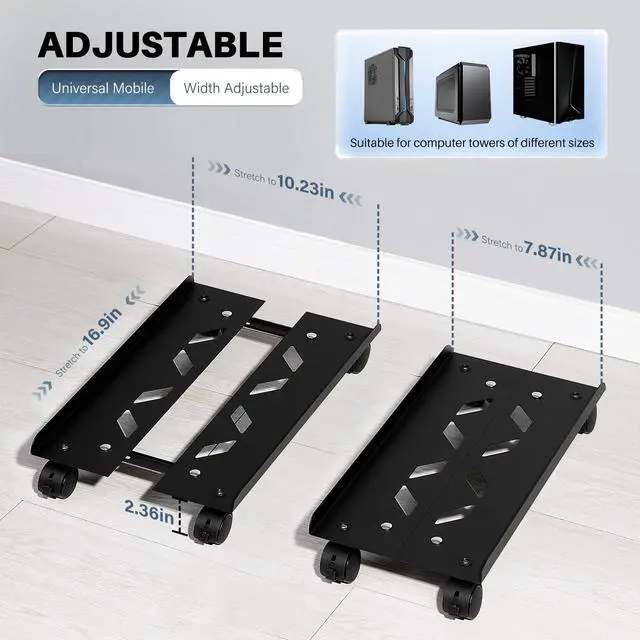 7.87in-10.23in width adjustment range fits most heavy duty computer towers on the market.
