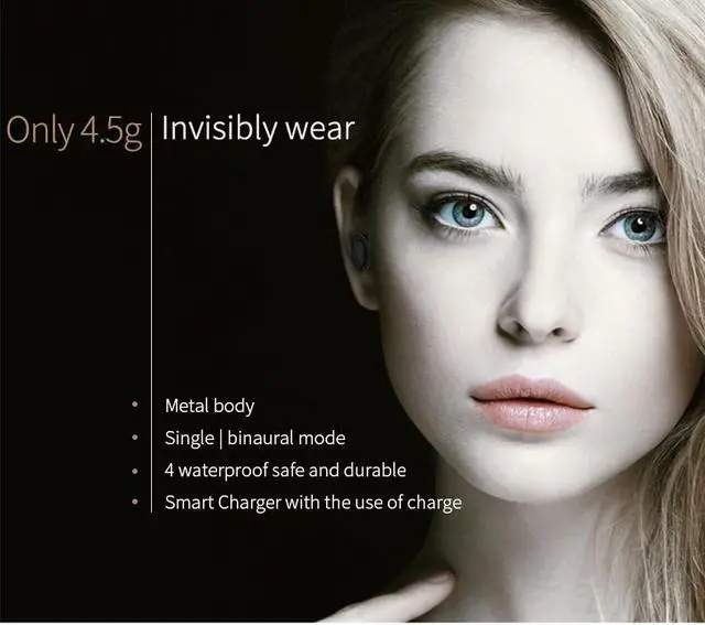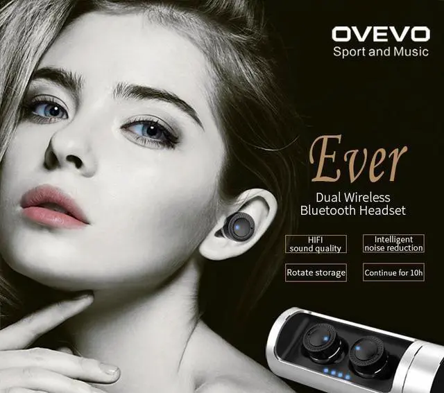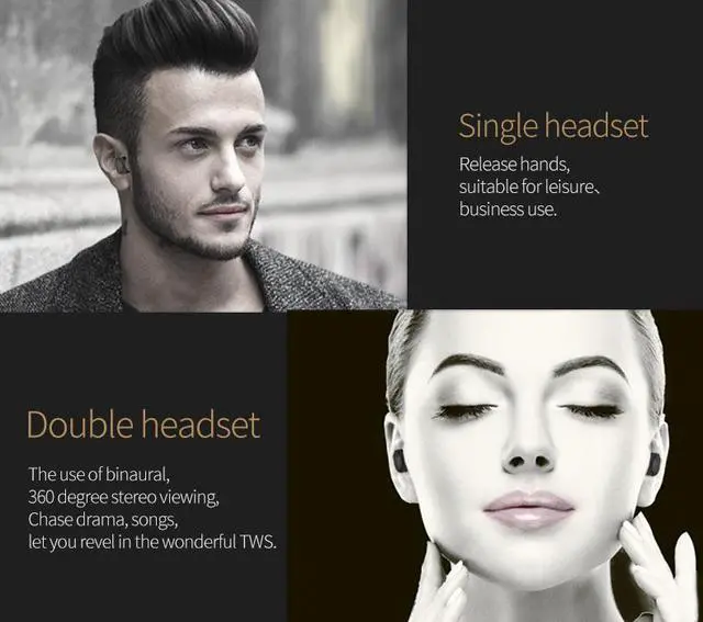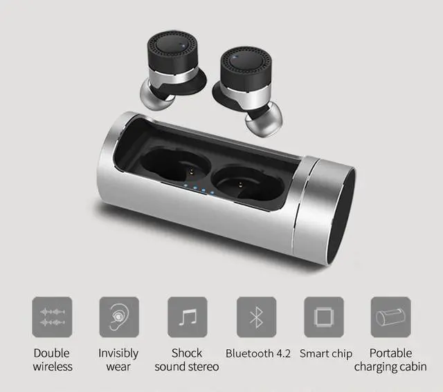 Equipped with dual Bluetooth earbuds, wireless to connect mobile devices and you can share it with your families or friends. Adopted CVC6.0 technology, reduce the noise, bring clearer conversation and music playing. Superb sound quality headset with ultra-low power consumption Bluetooth V4.2, create a best 360 degrees stereo sound and superb bass sound. Coupled with 800mAh charging dock, a mini power bank for charging your phone and Bluetooth headset at same time. Equipped with dual Bluetooth earbuds, wireless to connect mobile devices and you can share it with your families or friends. Adopted CVC6.0 technology, reduce the noise, bring clearer conversation and music playing. Superb sound quality headset with ultra-low power consumption Bluetooth V4.2, create a best 360 degrees stereo sound and superb bass sound. Coupled with 800mAh charging dock, a mini power bank for charging your phone and Bluetooth headset at same time.