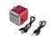 Features 1.Portable Rechargeable LED Music Stereo Media Speaker with 1.0" LCD + FM + Micro SD/ TF + USB + 3.5mm Slots 2.Multi-function speaker supports FM/ Micro SD Card/ TF Card/ USB/ 3.5mm jack audio device 3.Mini aluminum vibration film loud speaker,which has clear alt and pure woof.the unique design makes tone performance perfect 4.Metallic shell shows noble and fashionable,out of ordinary 5.With auto FM function, micro SD/ TF card slot and USB interface 6.Compatible with any audio output devices with 3.5mm jack such as mobile phone, MP3, MP4, Notebook PC, etc 7.Links the included 3.5mm jack audio cable with the speaker to play music straight from your laptop or PC 8.Several power supply manners including battery,computer USB,adaptor DC 5V allow you to enjoy the charm of digital products at any time 9.Plays MP3 format music files directly from USB or TF card 10.1.0" LCD screen to show working modes 11.With colorful LED light when powered on 12.Powered by USB port or li-ion battery (Battery included) 13.Small size, easy to carry Specification FM Frequency: 87.5~108MHz Interface: USB 2.0/ TF slot/ 3.5mm/ Mini USB Power Supply: Built-in Rechargeable Battery Battery capacity: 600mAh LCD: 1.0" LCD display screen Memory Card Type: Micro SD / TF, U disk Media Format: MP3 Total Power: 3Wx2 Signal to Noise Ratio(SNR): 85dB Sensitivity: 15dB +/- 3dB Size: 50 x 50 x 50mm/ 1.97 x 1.97 x 1.97in Color: Red, Sliver, Blue,, Green Package list 1 x Music Speaker 1 x USB charging Cable 1 x Audiop Cable