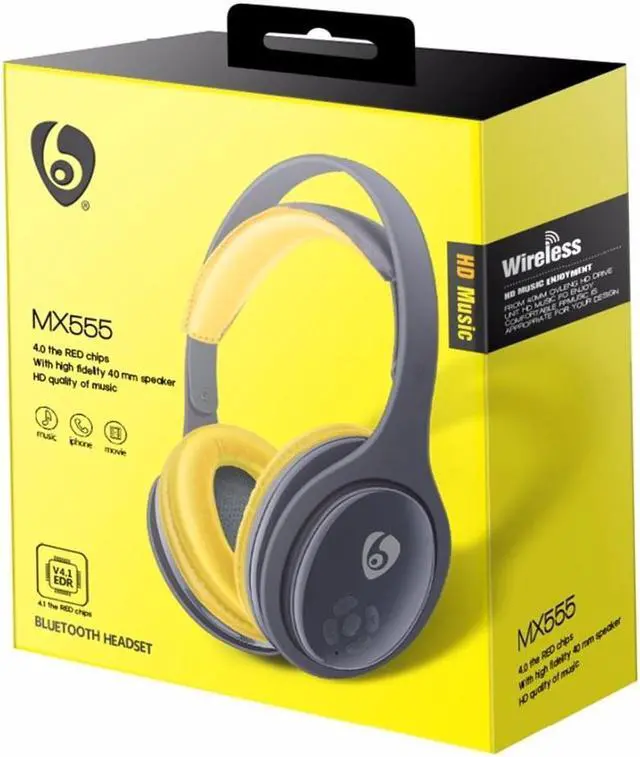 OVLENG MX555 Bluetooth 4.1 Headphones Wireless Stereo Noise Isolating Headset with Microphone for All Audio Devices - Yellow 1. A trendy and hip headphone gives you a great music experience without compromising on style 2. Luxurious ear pads that will keep you hooked onto your music all the day, which is perfect for travelers 3. The headset also features a universal microphone which allows you to easily pick up calls even when enjoying your favorite music 4. The headset comes in an attractive colour and is sleekly designed for comfort and the ultimate in crystal quality sound 5. Built-in microphone 7. Universally compatible with all audio devices. 8. It's so light that easy to carry in summer. 9. Distance : 10m 10.Battery Volume : 200mAh 11.Charging voltage : DC5V 12.Loudspeaker size : 40mm 13.Speaker impedance : 32Ohm 14.Working time : music3-5h,call 6-8h 15.Bluetooth version : 4.1 16.Power rating : 100mw 17.Working voltage : DC3.7V 18.Frequency response : 20-20kHz