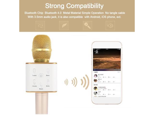 TUXUN Q7 Mini Wireless Karaoke Player Condenser Microphone Handheld Portable with Mic Dual Speakers Singing Record for Smart Phones Computer