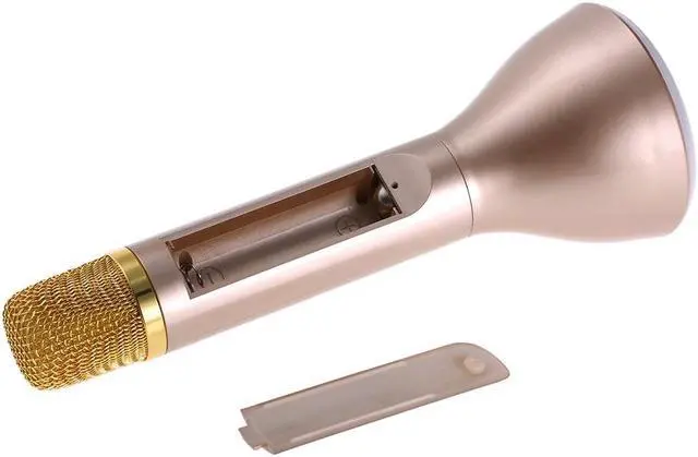 K188 condenser microphone is the best choice for singing or recording without going to KTV. With it, it can capture your voice with pickup hole without aiming at microphone and you can enjoy an audio feast with echo reverberation technology. You can connect with your phone with cable or Bluetooth function and It supports almost singing software no matter on the phone or on the computer with millions of songs for you to choose. No need to buy more accessories and simple operation which favors by people who practice singing, recording, etc. Model: K188 Bluetooth: V3.0 Bluetooth Chip: JL Pickup: Condenser Reverb Mode: Echo reverberation Impedance: 4 ohm Sensitivity: 52db Frequency Range: 150Hz-20Khz Charging Voltage: DC 5V Speaker Power: 5W Speaker Size: 52mm Built-in polymer battery: 1200mAh Battery Type: 1 * 18650 (not included) Using Time:2 hours LED Power: 0.8W Material: ABS Plastic + Print UV Color: Pink, Gold (Optional) Main Item Size: Approx. 22 * 8 * 8cm / 8.66 * 3.15 * 3.15in Main Item Weight: Approx. 253g / 8.91oz Package Size: Approx. 25.7 * 9.9 * 9.5cm / 10.12 * 3.90 * 3.74in Package Weight: Approx. 523g / 18.45oz Package List: 1 * Microphone 1 * USB Cable 1 * 3.5mm Audio Cable 1 * User Manual