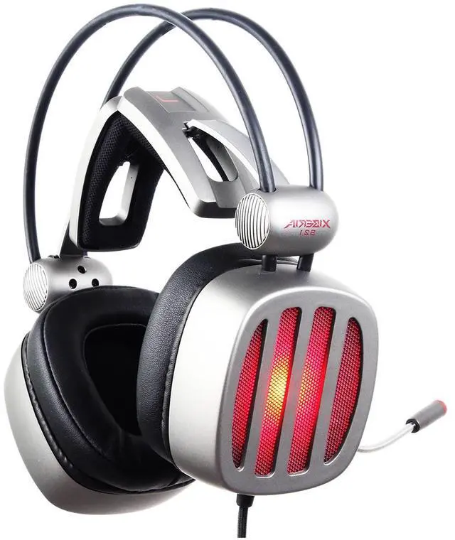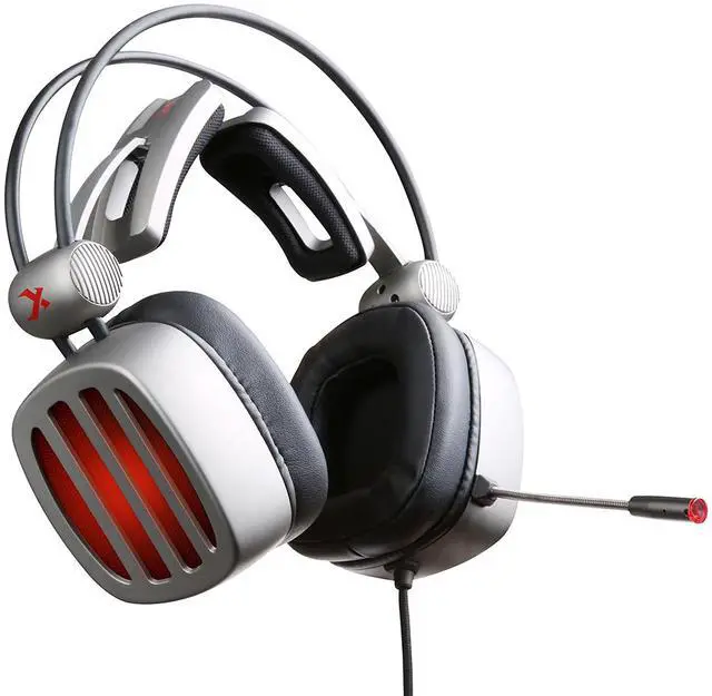 about400gFeatures: 1. Equipped with 50mm sounding unit, which has a full range, powerful bass, crystal clear highs. Also built in a 7.1 effect sound card, providing an immersive sound experience. 2. Noise-canceling microphone boom, perfectly captures the user39; s voice and simultaneously eliminates unwanted background noises. 3. 3D wing-shaped cushioned headband offers great balanced weight, decent leakproofness and comfort. Using aerospace materials, outstanding aerodynamic design, allows you for long gaming sessions without fatigue. 4. Furnace style breathing lighting, as like ear cup and mesh combining warm-toned lighting, make the overall design even better. 5.