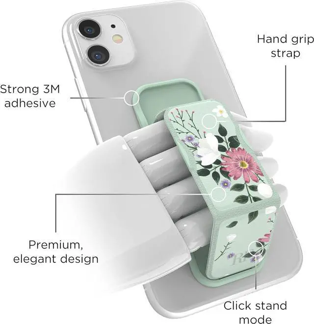 The universal stand can also be used as a phone hand holder with the grip strap for taking selfies and recording videos securely
