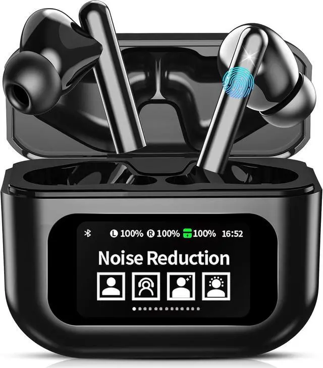 Hitoor Wireless Earbuds, Bluetooth 5.4 Headphones in Ear with Touch Screen and HiFi Stereo Deep Bass, ANC Noise Cancelling Mic Wireless Earphones,25H Playtime Bluetooth Earbuds,IPX5 Waterproof (Black)