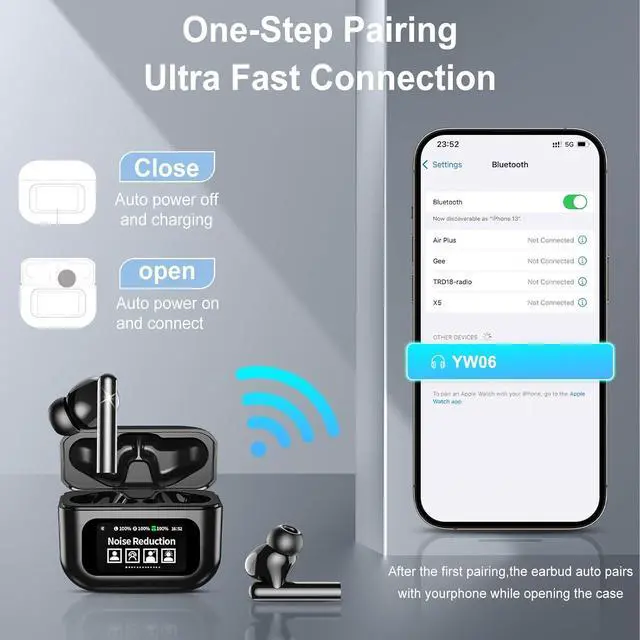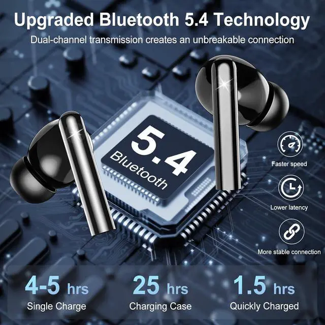 [Upgraded Bluetooch 5.4 and One Step Pairing] Applies advanced Bluetooth 5.4 technology, achieves faster and more stable signal transmission. Once open the lid of charging case, earbuds will automatically connect to the last paired device.
