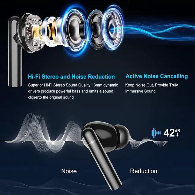 [HI-FI Stereo and ANC Noise Cancellation] with Hi-fi technology, powerful 13mm built-in dynamic speakers to provide a great listening experience. Also adopt ANC noise-canceling technology, which effectively separates your voice from ambient sound.