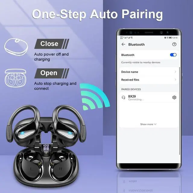 The wireless earbuds use latest Bluetooth 5.4 technology, with 85% faster audio data transmission speed, uninterrupted and stable transmission, and lower energy consumption (up to 15 meters), allowing you to easily control music and calls at home, in the office or anywhere; After the initial connection, just take the bluetooth earphones out of the charging case, the device will automatically pair with the earbuds.