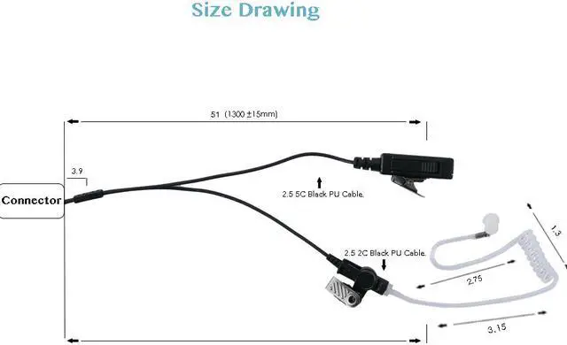 Two Wire Acoustic Tube Covert Bodyguard FBI Surveillance Earpiece Earphone Headset PTT (Push To Talk) with built-in line mic microphone PTT for Motorola Moto