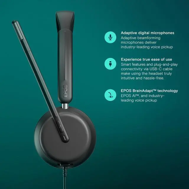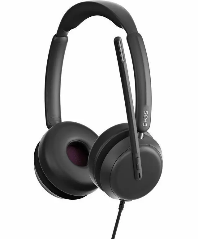 Double-sided headset for desk workers in the New Open Office. Increase efficiency by 40%* by improving reaction time whilst multi-tasking to maintain accuracy with EPOS BrainAdapt (tm) and industry-leading voice pickup by EPOS AI (tm). Be heard no matter the level of background noise and get super wideband audio for natural sound. Enjoy total ease of use with intuitive controls and smart features. Experience all-day wearing comfort with a lightweight design, soft cushions, and headband padding. *EPOS BrainAdapt (tm) Dual Task Study