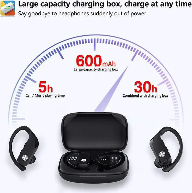 Long battery life- The twins' wireless earbuds can hold 5 hours of music time on a single charge. The charging case can charge the twin earbuds 6 times, so the twin earbuds can last up to 30 hours. You don't have to worry about them turning off.
