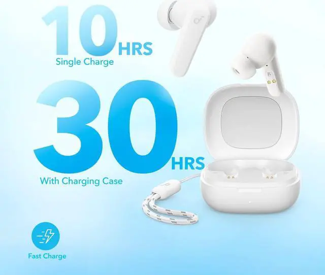 Extended Playtime: Enjoy 10 hours of playtime on a single charge. The charging case holds up to 30 hours of extra power, so you can top up your earbuds on the go.
