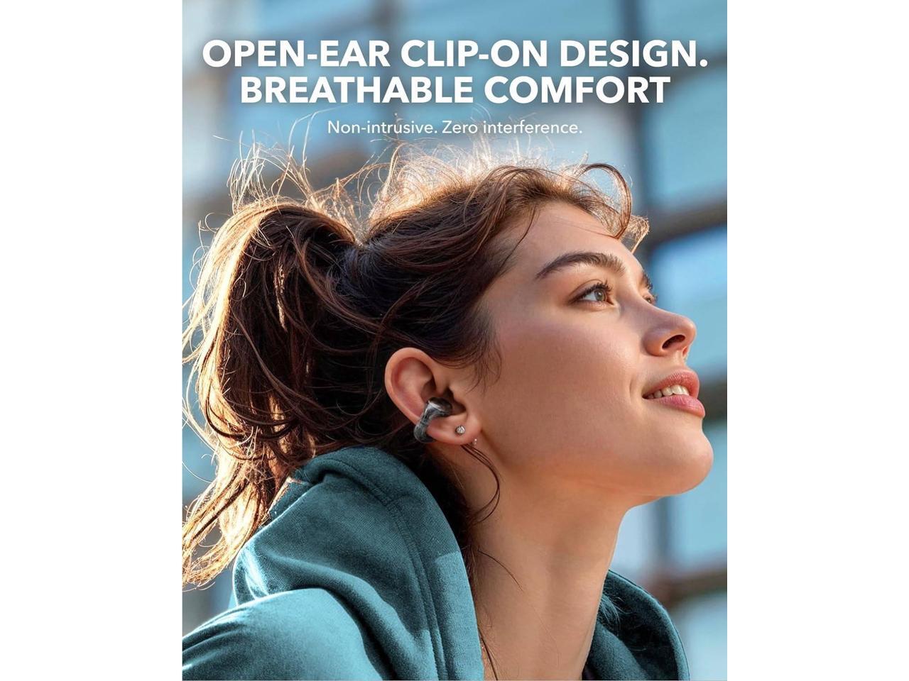 - Breathable Comfort: Enjoy unparalleled comfort with soundcore C30i open ear earbuds, expertly crafted for breathability and featuring a secure clip-on design. Listen to your favorite tunes with freedom and extra comfort.