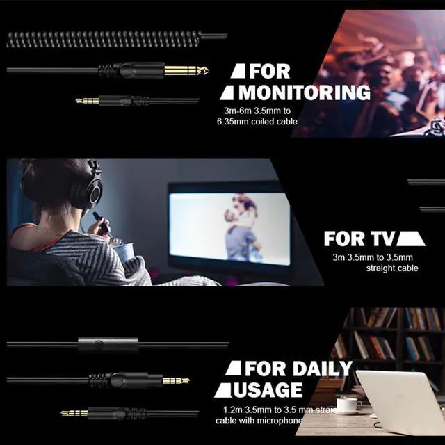 1. 3-6m 3.5mm to 6.35mm coiled cable for monitoring.