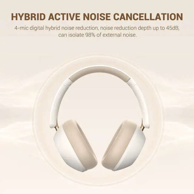 Silence the Noise, Amplify Your Moments. Whether you're navigating a bustling commute, unwinding at home, or exploring the world, the Focus A5 adapts seamlessly to your lifestyle. With Hybrid Active Noise Cancellation (HANC) reaching -45dB, it captures and silences up to 98% of low-frequency noise. Feel the chaos fade--airplane engines, subway rumbles, office chatter--leaving only what matters: your music, your focus, your peace.
