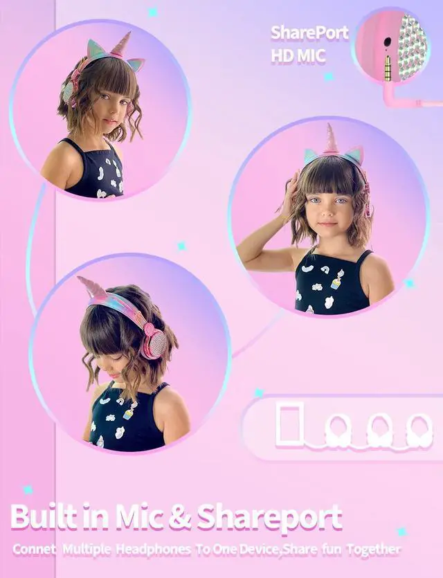 Unicorn Gift for Girls: Come with Unicorns box, includes a unicorn bracelet and unicorn stickers. Watch your childs imagination soar with Unicorn headphones