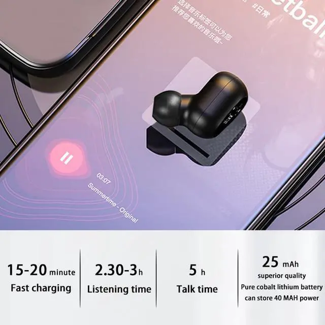Compatible: Android, iOS, Microsoft, Tablet, 99% of the phones with Bluetooth. Features: - Mini in-ear wireless invisible design. - Super Mini Size and hidden in the ear, no wearing burden. - Ergonomic earphone design ensure the earphone is stable in ears, good for driving, sport, business and leisure. - Bluetooth V 4.1 + EDR wireless signal with 10-meter range. - Deep DPS noise-reduction microphone ensures clear voice. - Voice prompt for pairing, calling, turning on/off. - Single multi-function button for turning on/off, switching songs, Switching languages, answering/declining calls. Bluetooth Pairing: