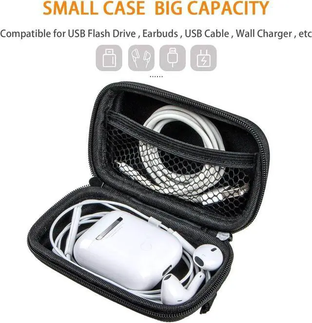 Made of Supreme Quality Durable EVA Crush Resistant Anti-Shock Weather Resistant MaterialGood for iPod Shuffle Charging Cable Earphones Memory Cards USB Flash Drive lens filter Keys and CoinsMesh Style with Zipper Enclosure Inner Pocket secures item from movement soft cloth lined interior to safeguard your earphones and Durable ExteriorCompact( 4.3L x 2.5W x 1.3H ) and functional hard case keeps items safe and extremely portable. For more size option in product description. Lightweight and good size for handhold it can also be hang on a back bag with a Carabiner