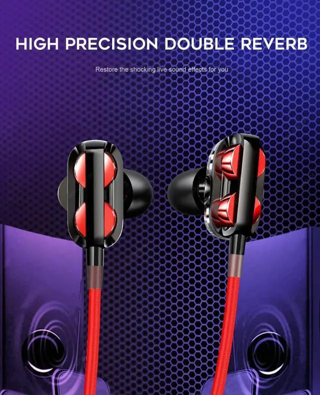 3.5mm Wired Headset Quad Core Bass Dual Dynamic Earphone Music Sport Gaming Earphone In Ear With Microphone Wire Control Earbud