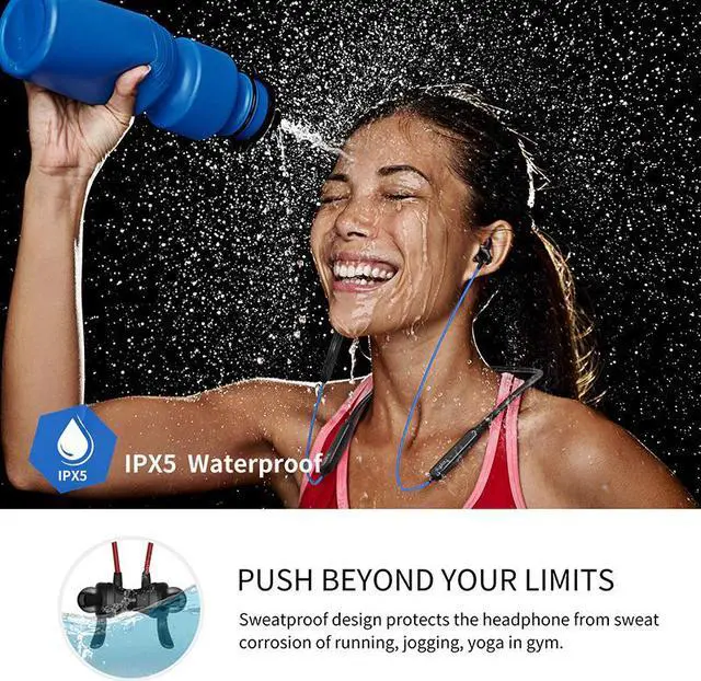 IPX 5 Sweat Proof - Its professional sweat proof shell and internal special terproof coating provide double protection for our Bluetooth earphone, so it wont be corroded by sweat.It can work for a long time under good maintene.Perfect for gym, running, jogging, cycling, camping, hiking etc. Runner friendly!
