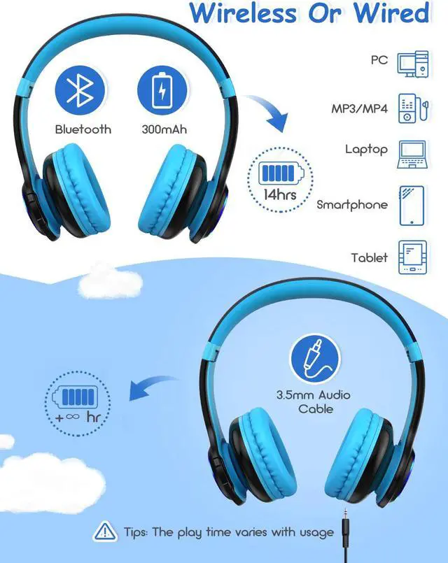 1. Powerful Bluetooth 5.0 & 15-Hour Playing TimeBluetooth 5.0 plus 15-hour playing time, while providing lower power consumption, faster connectivity and stronger signal, ensure kids uninterrupted joys. After first pairing, you can free from the hassle of paring again.