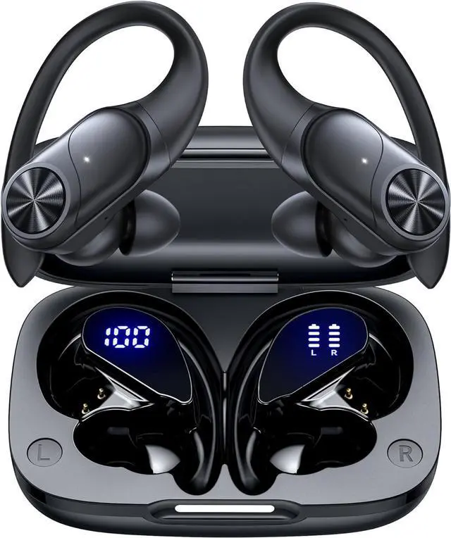 Design for Sports & IPX7 Sweat-resistant: Bluetooth earphones are the result of years of research aimed at improving people's wearing experience based on thousands of ear canal. Designed with flexible and soft ear hooks, earbuds wireless bluetooth fit perfectly in your ears and stay focused on your exercise routine without worrying about falling out. To provide you with customized comfort, 3 multiple sizes of ear tips are available. IPX7 waterproof can keep the beat going even with a little rain