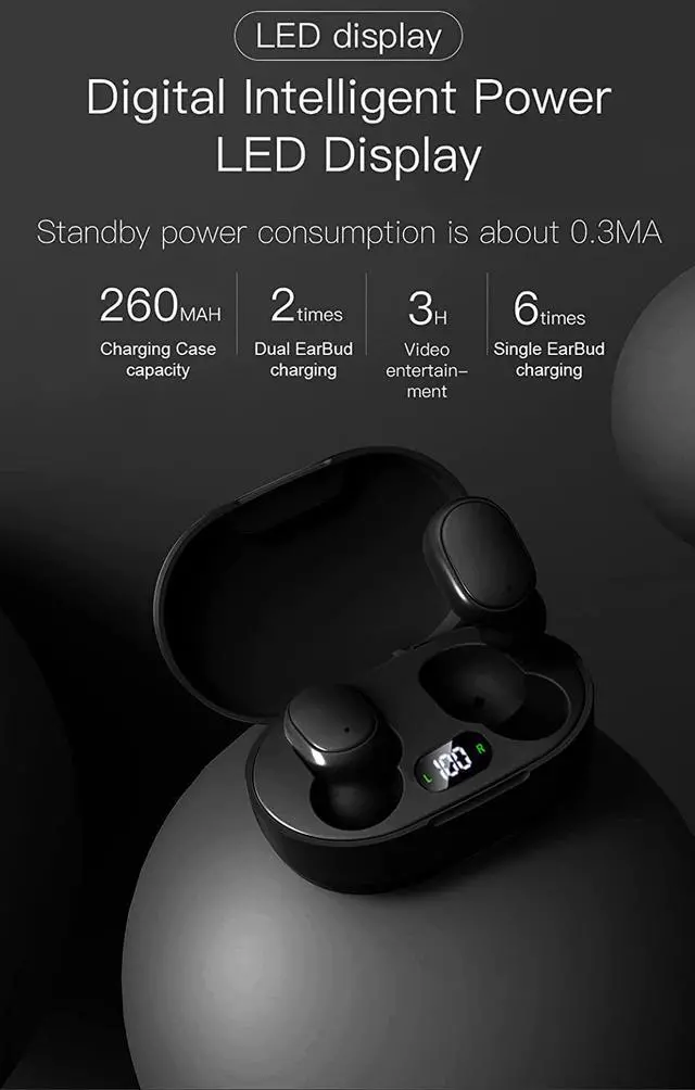 BluetoothEarbud: 2 Pieces - Smart LCD Charging Case USB Micro to USB A Charging Cable - User manual