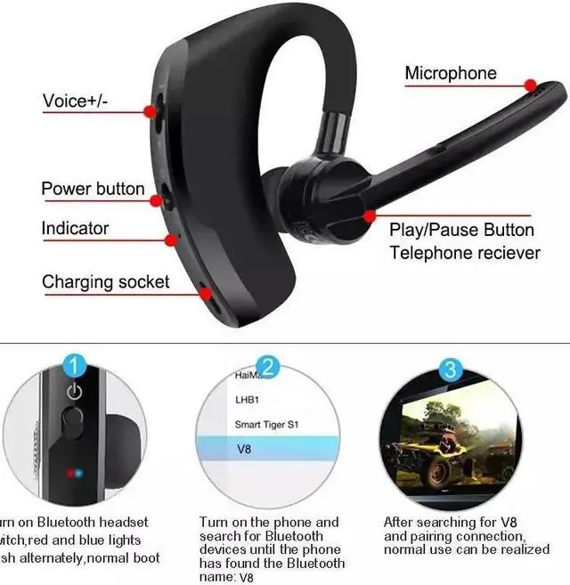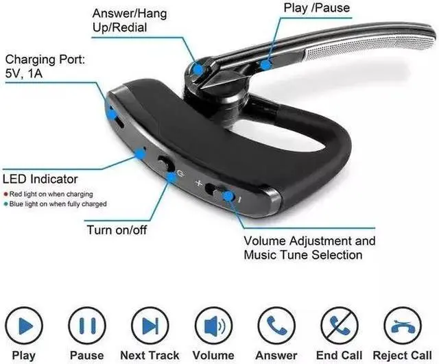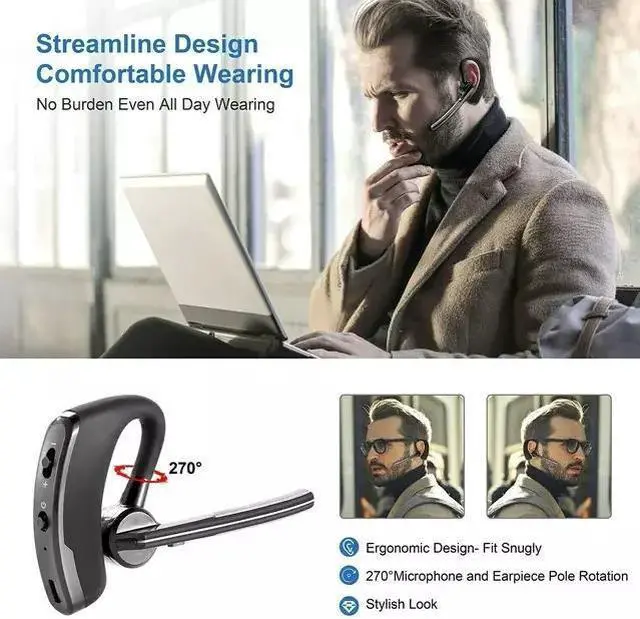 Long Battery Life - Hands-free Wireless Headset offers up to 3 hours continuous talking time and 8 days standby time on 2 hours single quick charge. The powerful battery life brings convenience to your life. Perfect for driving, home, office, business and more.