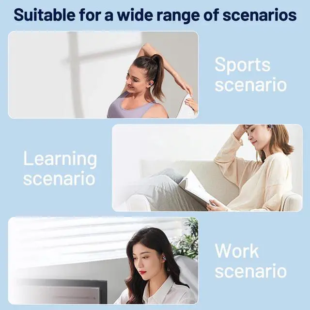 9. The OWS earphones feature a clip on design that does not enter the ear, allowing for directional sound transmission without any leakage; Ergonomic ear clips, comfortable to wear;