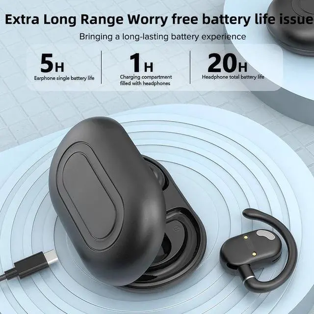 2: It can be used for about 5 hours at a time, and the charging case can provide an additional three times, with a total battery life of 20 hours