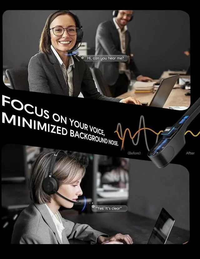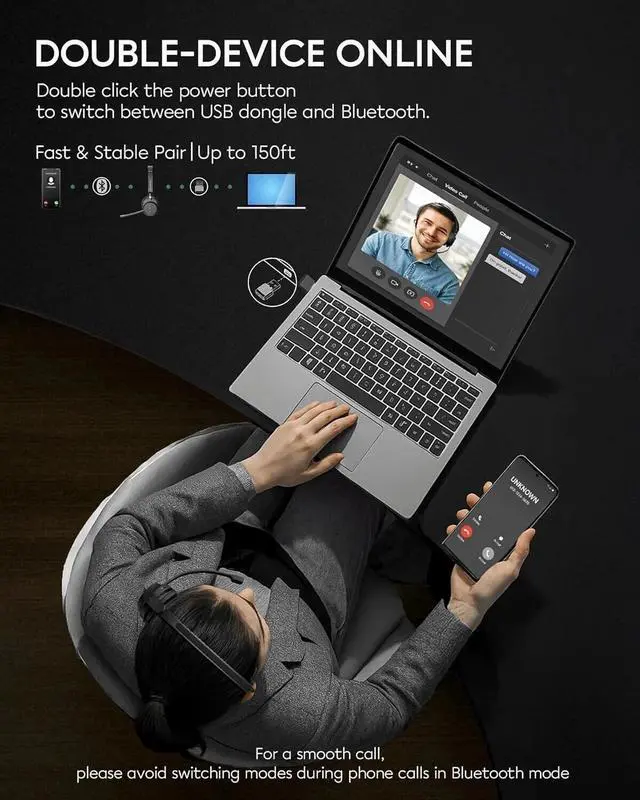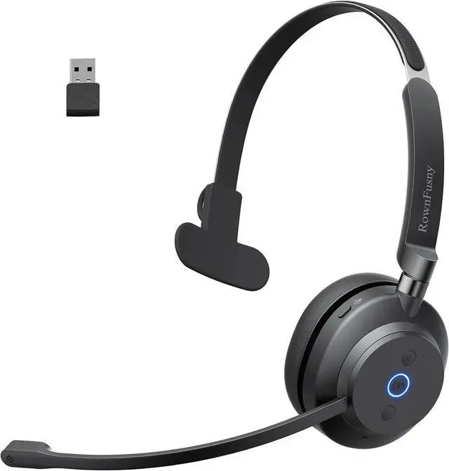 Wireless Headset with Mic Bluetooth 5.3 Mono Computer Headphones with USB Dongle