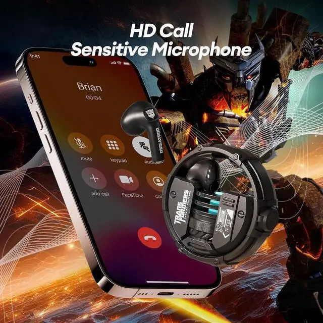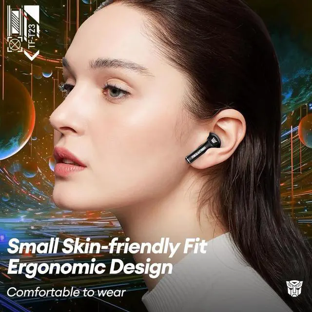 Transformers TF-T23 Wireless Bluetooth 5.4 Earphones, Bass Stereo, HD Mic, 60H Playtime, IPX5 Sweatproof for Android iOS Black