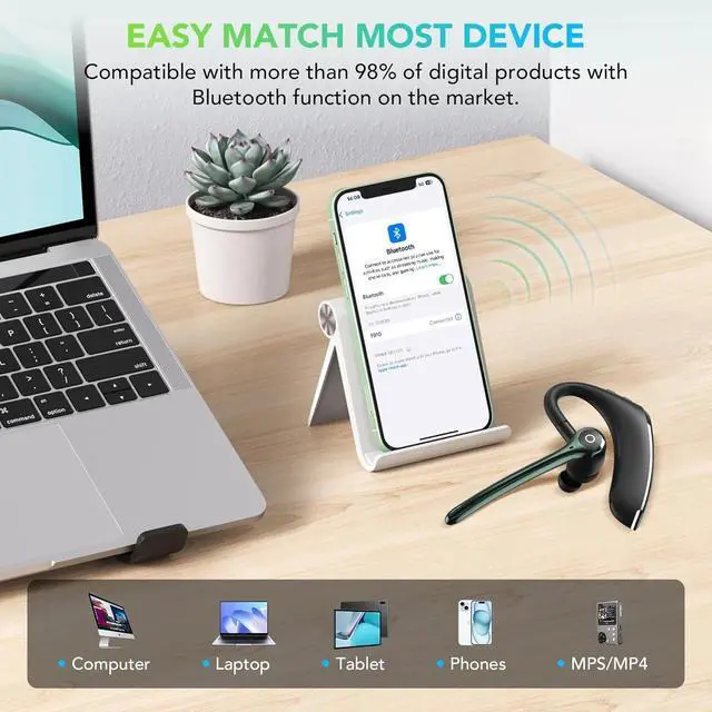 Hands-free for Calling: The bluetooth headset is designed with a lightweight hanging ear, which is comfortable and durable. Support voice wake-up Siri, you can call without holding the phone. Use multi-function buttons to avoid accidental touches. The headset can be easily controlled on the headset, which is very convenient for people who often drive.