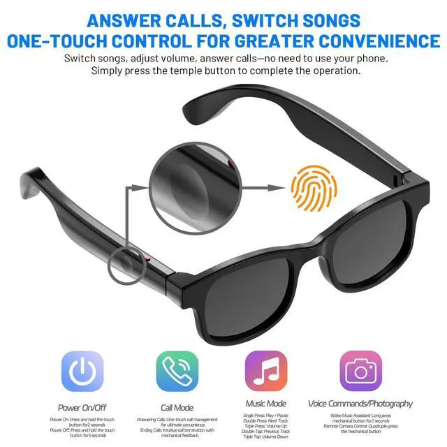 Bluetooth Sunglasses Mic Headphones Wireless Touch Stereo Speaker Smart Glasses