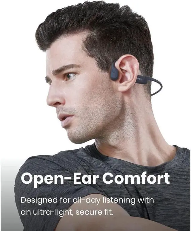 Open-Ear Comfort - OpenRuns innovative design features a featherweight, wraparound frame and wireless, open-ear fit for comfortable, earbud-free listening.