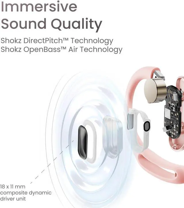 The OpenFit Air, with its PremiumPitch 2.0 + technology, enhances your listening experience whether you're listening to music, podcasts, or taking conversations with dynamic sound that has rich bass and clean highs. The seamless communication offered by Bluetooth 5.0 technology ensures dependable pairing and increased range.