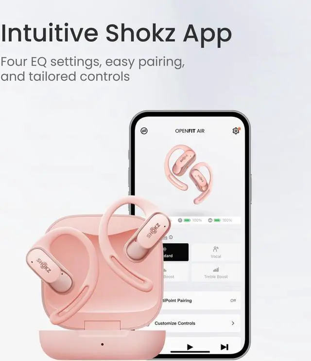 The SHOKZ OpenFit Air True Wireless Earbuds will take your wireless music experience to the next level. These earbuds are made for people who value situational awareness and sound quality equally. They include an OpenFit design that guarantees comfort and lets you hear what's around you.