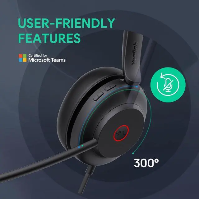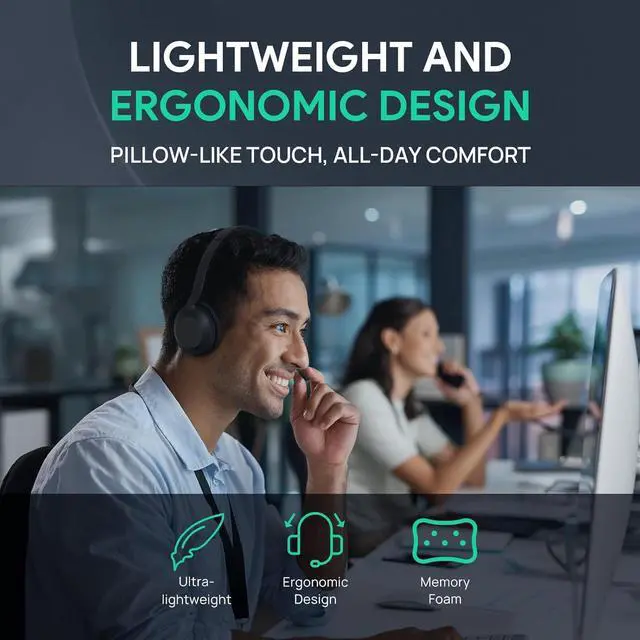 Convenient & Comfortable: Convenient in-call controls, including mute, volume, answer call, end call, and the Teams button, connetare easy to reach. Two earmuffs that are soft and light, comfortable all day.