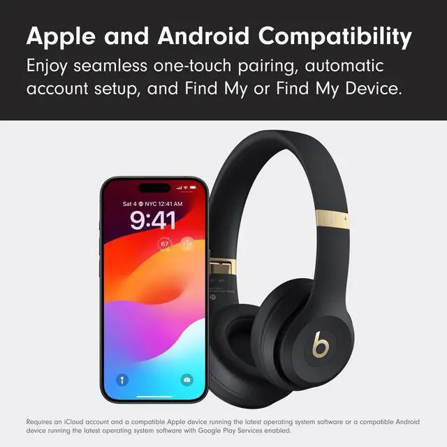 Beats Solo 4 - Wireless On-Ear Bluetooth Headphones, Up to 50-Hour Battery Life, Ultra-Lightweight Comfort, Powerful and Balanced Sound, Apple & Android Compatible - Black & Gold