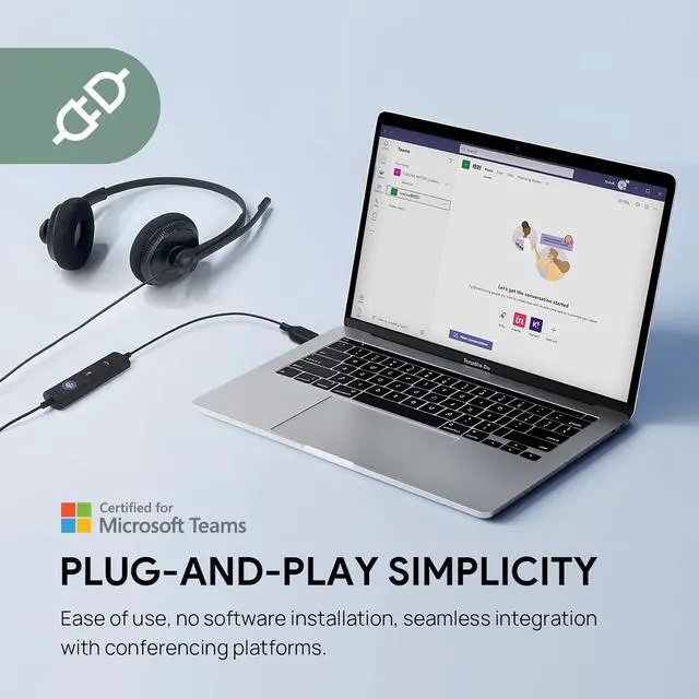 Wide Compatibility Certified by Microsoft Teams. Auto-configure once plugged in to be your default audio device. This carries over to your Microsoft Teams software or app allowing you to be up and going in seconds with your new headset.Also Compatible with Zoom Skype, Whatsapp, and the other popular online voice call services.