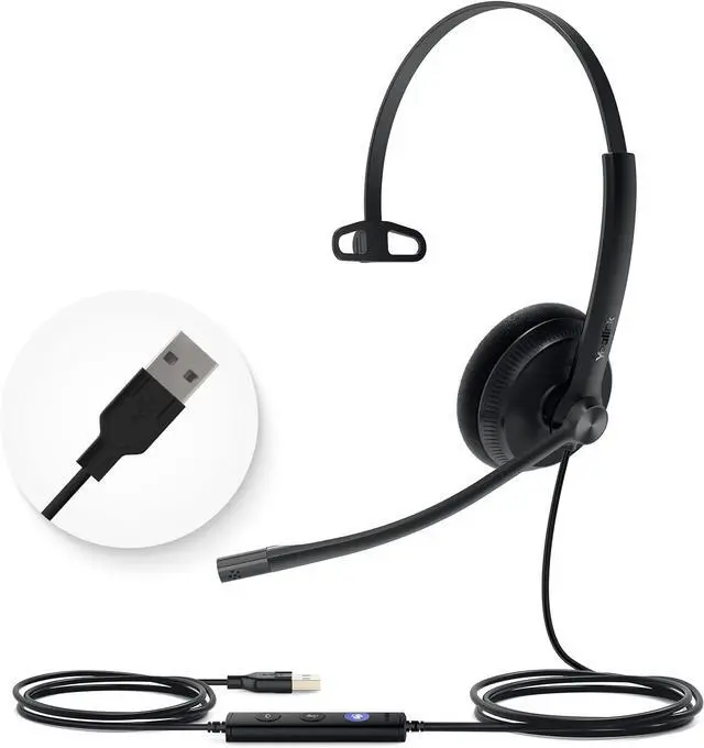 Yealink UH34 USB Headset with Mic, Single Ear Wired Headphones with Noise Cancelling Microphones, Professional Work Headphones VoIP Phone Computer Call Center Office,Ultra Light Mono
