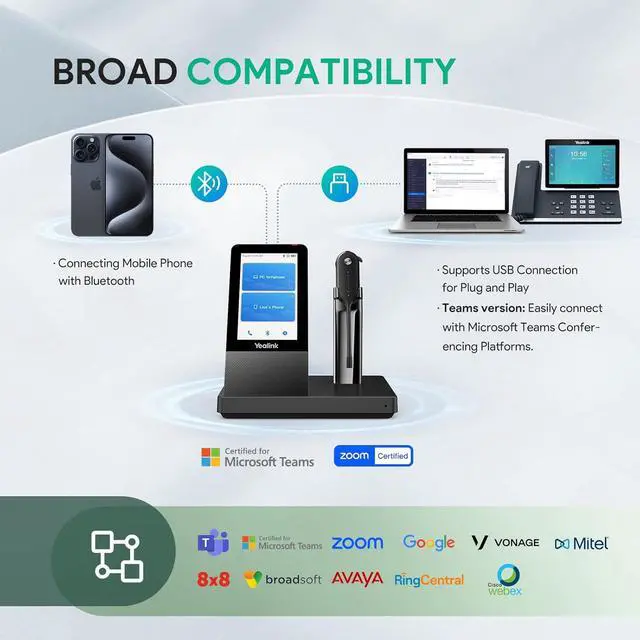 Teams&Zoom Certified: The Yealink WH67 wireless headset is certified for teams. plug & plug, multiple options for your Teams work call control, you can easily control muting and answering calls, on your computer, on the headset bases touch screen, and on the headset itself.